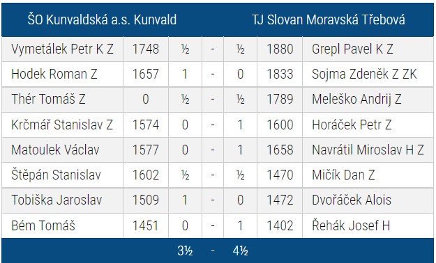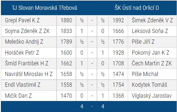 | 6 | ŠK Ústí nad Orlicí C | 4 | 2 | 0 | 2 | 6 | 14.5 | 10 | |
