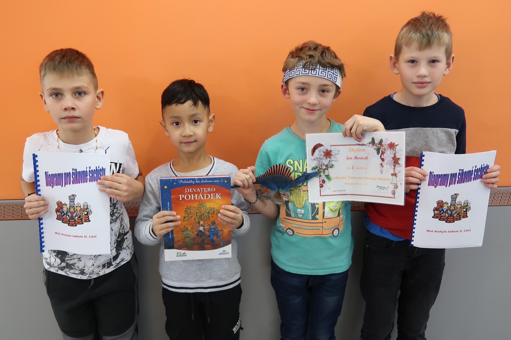 Na tradiční Vánoční turnaj ve Svitavách si odjelo zkrátit dobu čekání na dárky celkem sedm našich mládežníků. Hrálo se den před Štědrým dnem opět v kulturním středisku Fabrika. Naše zdravé jádro Honzu Horáčka, Elišku Horáčkovou, Vojtu Šmehlíka a Dana Mičíka doplnil i Ondřej Šesták, kterému se na posledním turnaji velmi dařilo. Na svůj první turnaj odjel i náš nejmenší poťer, sedmiletý Honzík Nguyen a osmiletý Vojta Melka. Celý turnaj se opět nejlépe vyvedl Honzovi Horáčkovi. Hrál nebojácně i proti o dva roky starším soupeřům a se ziskem šesti bodů ze sedmi obsadil výbornou druhou příčku. Ostatní naše děti se sice už na stupně vítězů nedosáhli, ale všichni si ze Svitav odvezli pěknou cenu a skvělým zážitek z dobře organizovaného turnaje.