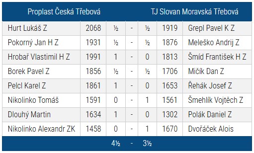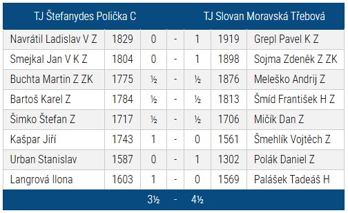 Z posledních tří kol jsme uhráli pouze tři body. V Poličce to byla vydřená výhra a klidně to mohlo být i obráceně. Asi nejvíc mrzí prohra v České Třebové, kde jsme zápas měli velice dobře rozehraný, ale jednoduchými chybami jsme se o vítězství sami připravili. V pátém kole jsme vyfasovali lídra soutěže Ústí C, který nás celkem bez problému přehrál.