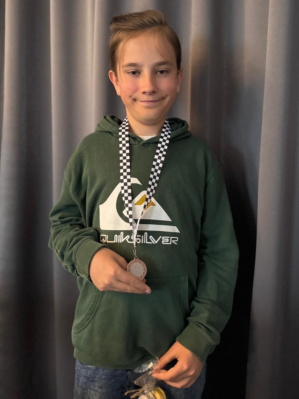 V rámci tréninku si zajel náš mladíček Eliáš Rada do Brna na mládežnický OPEN turnaj „O šachového krále a královnu Bowlingu Brno“. Jedná se o zajímavý formát sérii turnajů, které se hrají ve všední den a je určen pro začínající šachisty. Hrálo se na pět kol, tempem 2×10 minut na partii + 5s/tah. A Eliáš si vedl výborně. Vyhrál první čtyři partie a prohrál pouze s pozdější s vítězkou celého turnaje Májou Komárkovou. V konečném pořadí skončil Elik na třetí příčce a z Brna si tak odvezl pěknou cenu a bronzovou medaili.