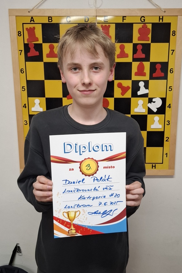 Na jeden z posledních turnajů v této sezóně jsme odjeli do Lanškrouna s osmi hráči a to bez jakéhokoliv očekávání. Hlavním cílem bylo si turnaj především užít. Turnaj byl rozdělený na dvě věkové kategorie. V první kategorii hrálo celkem 40 dětí ve věku do 13 let a zde jsme měli pět zástupců. A právě o největší překvapení na turnaji se postaral náš mladíček, Eliáš Rada. V prvním kole sice prohrál s nejvýše nasazeným Honzou Horáčkem, ale potom si připsal šest vítězství v řadě a s půlbodovým náskokem celý turnaj vyhrál. Byl to skvělý výkon! Velmi dobrého výsledku dosáhli i Tonda Bednář (7.) a Samuel Novotný (10.). V této kategorii jsme měli ještě dva zástupce, Mikuláše Makrlíka (27.) a Denise Rychlého (31.).