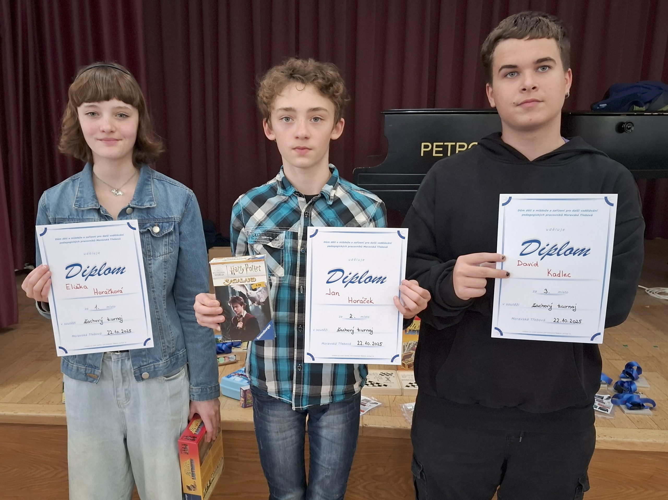 Ve spolupráci DDM Moravská Třebová se nám podařilo opět po dlouhé době uspořádat Oblastní přebor škol Moravskotřebovska a Jevíčska. Tento turnaj mohly školy využít jako školní kolo postupové soutěže pro žáky základních a středních škol, pořádané ŠSČR, pro „Přebor škol v šachu“ (Mistrovství ČR školních týmů v šachu) k sestavení čtyřčlenných týmů pro okresní kolo této soutěže. Ve dvou kategoriích (1.-5.třída a 6.-9.třída) se turnaje zúčastnilo celkem 43 dětí ze sedmi škol. Turnaj se tentokrát odehrál ve velkém sále ZUŠ Moravská Třebová a byla zde skvělá účast. Děkuji všem zúčastněným školám za podporu této královské hry vysláním svých žáků na turnaj v tak hojném počtu a ZUŠ za poskytnutí sálu.