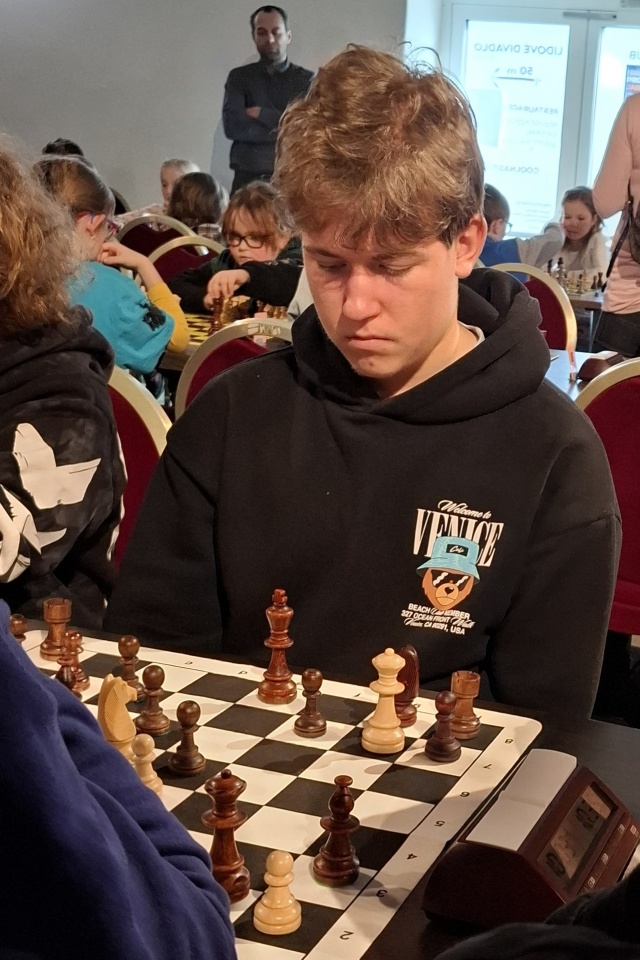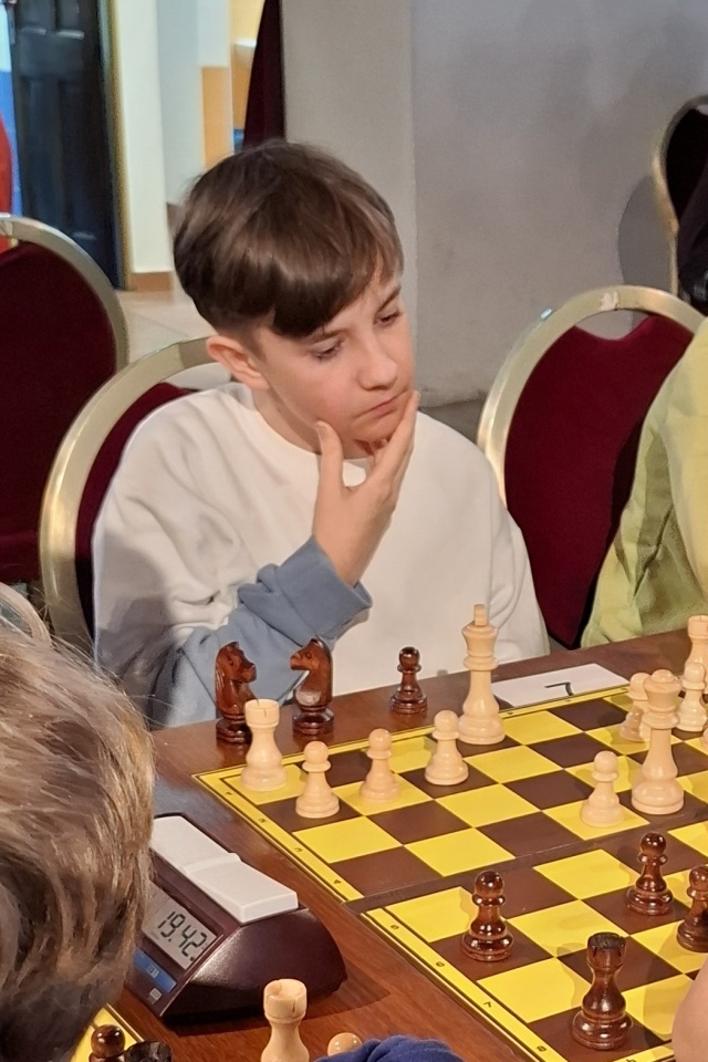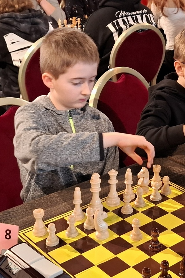 V HD10 hrál náš benjamínek, osmiletý Davidek Fránek. Uhrál si dva a půl bodu a opět nasbíral spoustu zkušeností. Ve druhé věkové kategorii HD12 jsme měli celkem tři zástupce. Z HD10 se sem přemístil v rámci přípravy na finálový turnaj Samuel Novotný a vedl si nad očekávání dobře. V prvním kole sice trochu nešťastně prohrál, ale potom vyhrál šest partií za sebou a zaslouženě si ze Svitav odvezl zlatou medaili. Také náš druhý zástupce, Antonín Bednář, si vedl velmi dobře. Získal čtyři a půl bodu a celkovým desátým místem si s největší pravděpodobností už také zajistil finálový turnaj. Turnaj se moc nevydařil Mikuláši Makrlíkovi, který se dvěma body skončil daleko za postupovými příčkami.